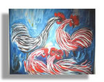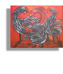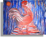 The rooster is a powerful symbol of the preening Caribbean male who rules his family and his roost. Restless and in competition with his rivals he displays his feathers for all to see. For more art and information please visit www.jeangirigori.com